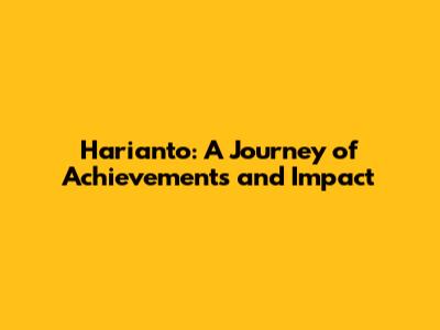 Harianto: A Journey Of Achievements And Impact