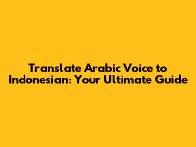 Translate Arabic Voice To Indonesian: Ultimate Guide