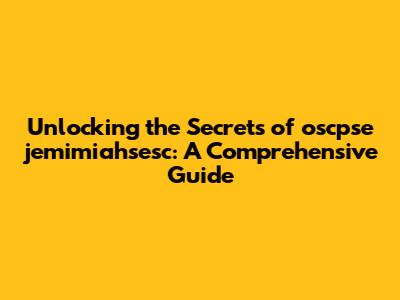 Unlocking The Secrets Of Oscpse Jemimiahsesc: A Comprehensive Guide