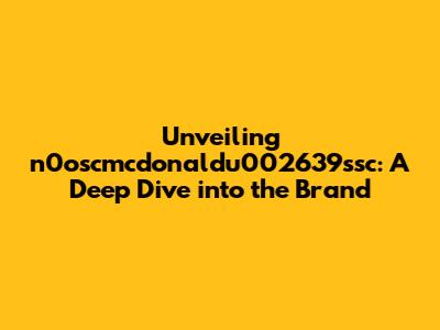 Unveiling N0oscmcdonaldu002639ssc: A Deep Dive Into The Brand